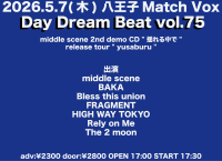 出演 middle scene BAKA Bless this union FRAGMENT HIGH WAY TOKYO Rely on Me The 2 moon adv:¥2300 door:¥2800 OPEN 17:00 START 17:30