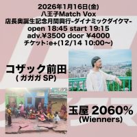 出演 コザック前田(ガガガSP) 玉屋2060%(Wienners) open 18:45 start 19:15 adv.¥3500 door ¥4000